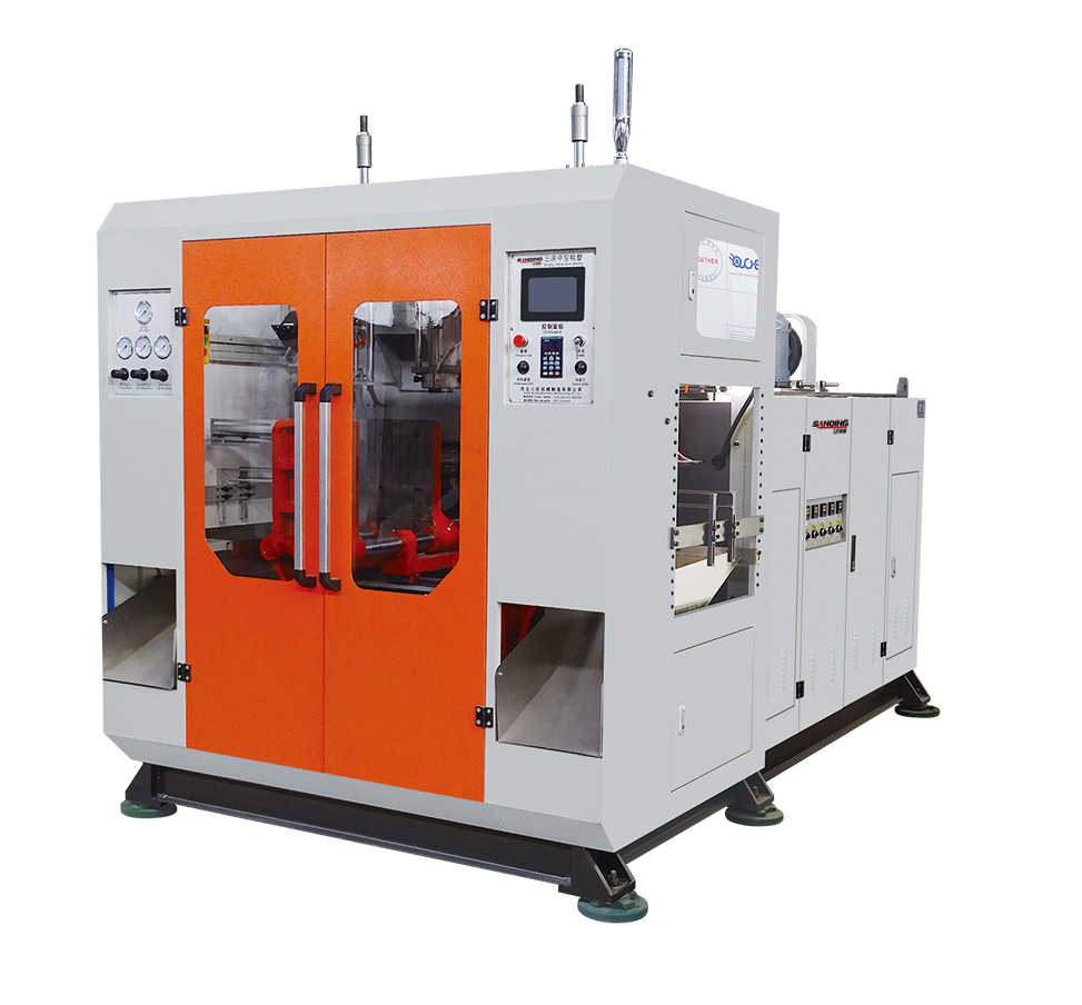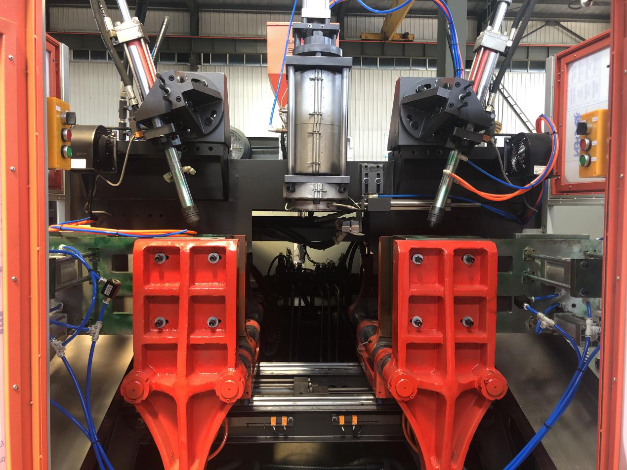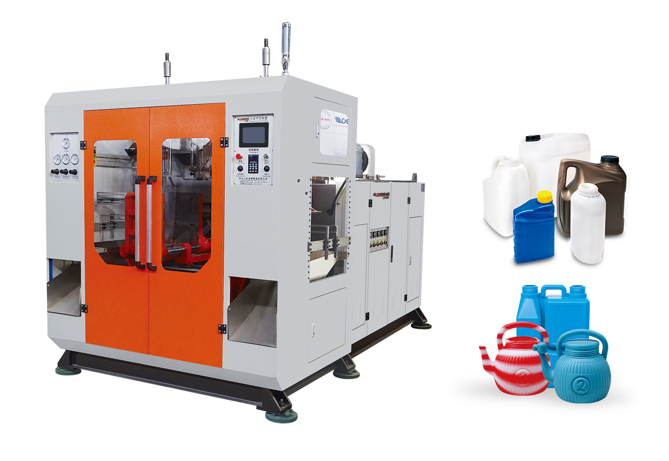5升液压全自动中空吹塑机,单或多工位多模头设计,采用日本欧姆龙PLC,触摸式显示屏控制, 操作简单方便,适合像机油壶、洗涤类壶桶等5升以下中空品,性能稳定,能充分满足客户对塑料吹制品的各项要求。